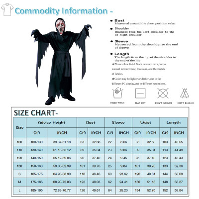 يأتي هذا الزي هالوين الطفل يتضمن قناع شخصية ورداء طويل أسود مقنعين ، مع حزام.